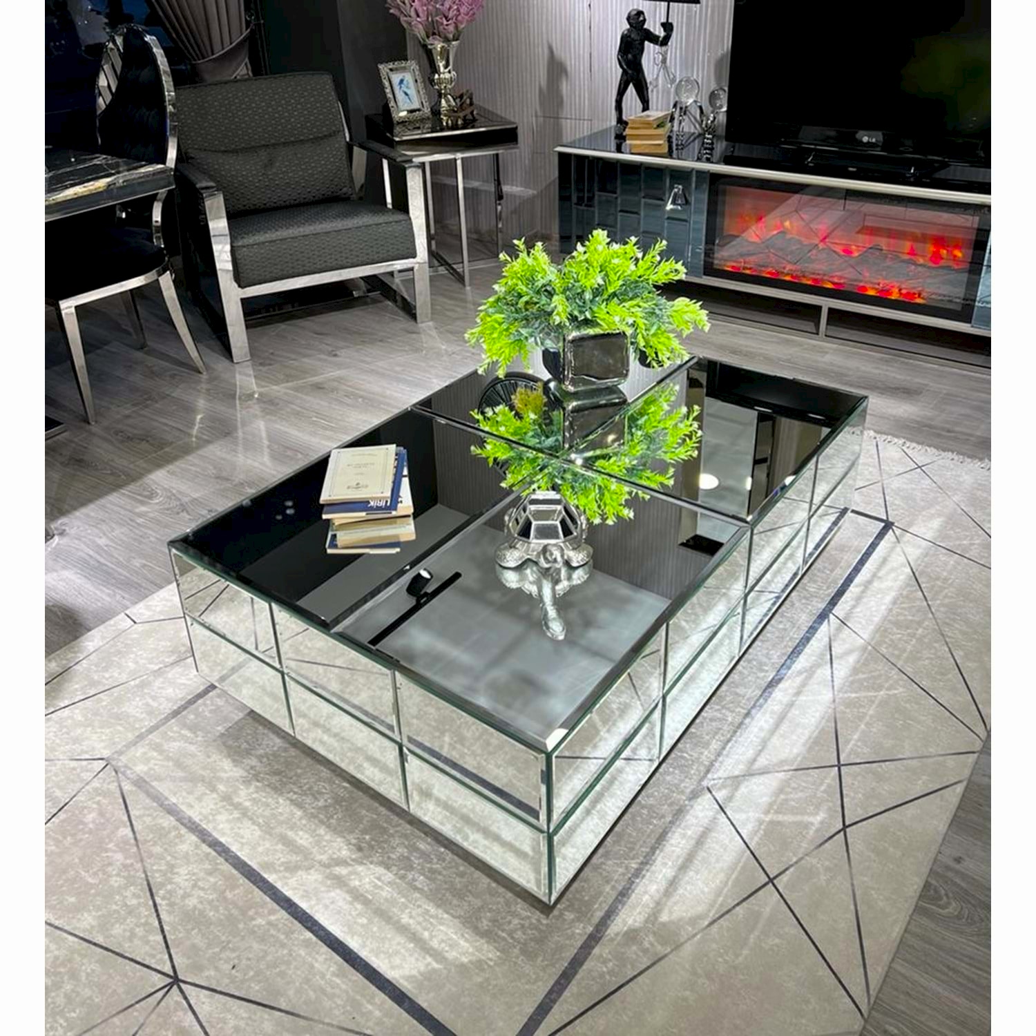 Bazalı model aynalı orta sehpa modeli 120*80 H:40 cm ölçülerindedir